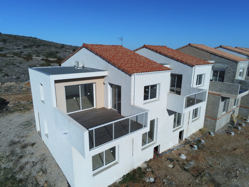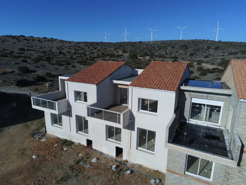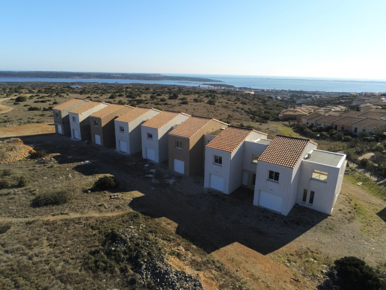 FITOU, sur les hauteurs du village et en pleine nature, ensemble immobilier de 8 villas neuves aux dernières normes thermiques à la vue aérienne sur la mer et l'étang. Séjour / SAM / cuisine de 38 m² donnant sur une terrasse de 16 m² avec sa vue panoramique sur la mer et l'étang 3 grandes chambres dont une suite parentale de 19 m² , 2 SDE, garage de 21 m². Les villas sont entièrement terminées et possèdent une cuisine aménagée, des placards aménagés, la climatisation.....Frais de notaire réduits. Garantie Dommage ouvrage. Les villas dépendent de la résidence les Capitelles bénéficient de l'accès à la piscine privative et aux espaces de détente de la résidence. Livraison septembre 2023.